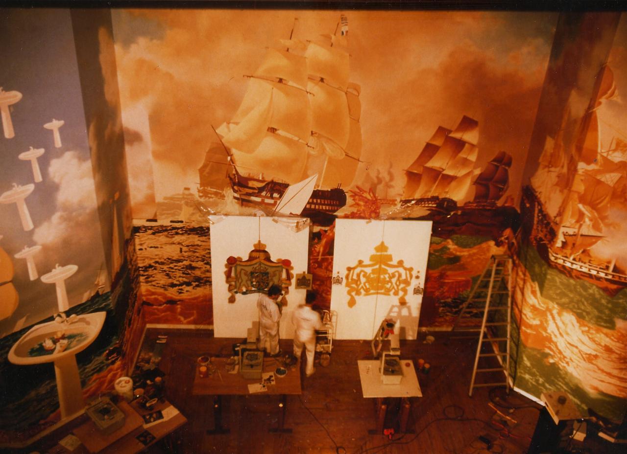 Cliché pris en cours de réalisation : Technique qui consiste à volontairement encrasser et vieillir la couche picturale.